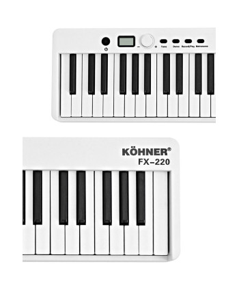Köhner FX-220, sizlere alışılmışın dışında farklı bir piyano deneyimi yaşatmaya geliyor. Şarj edilebilir özelliği sayesinde elektrik ihtiyacı duymadan her yerde kablosuz bir şekilde kullanabilir, katlanabilme özelliği sayesinde de yanında gönderilen taşıma çantasına koyarak istediğiniz yere taşıyabilir veya istediğiniz yerde muhafaza edebilirsiniz.